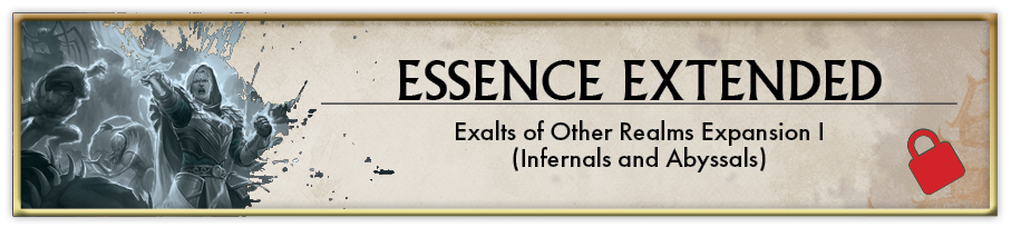 Onyx Path will expand the new supplement, adding material on Abyssals and Infernals. This supplement will be released for purchase on DriveThruRPG and added as a free bonus reward to all backers receiving the Exalted: Essence Player's Guide standard hardcover or Deluxe Edition [SIDEREAL PLEDGE+]