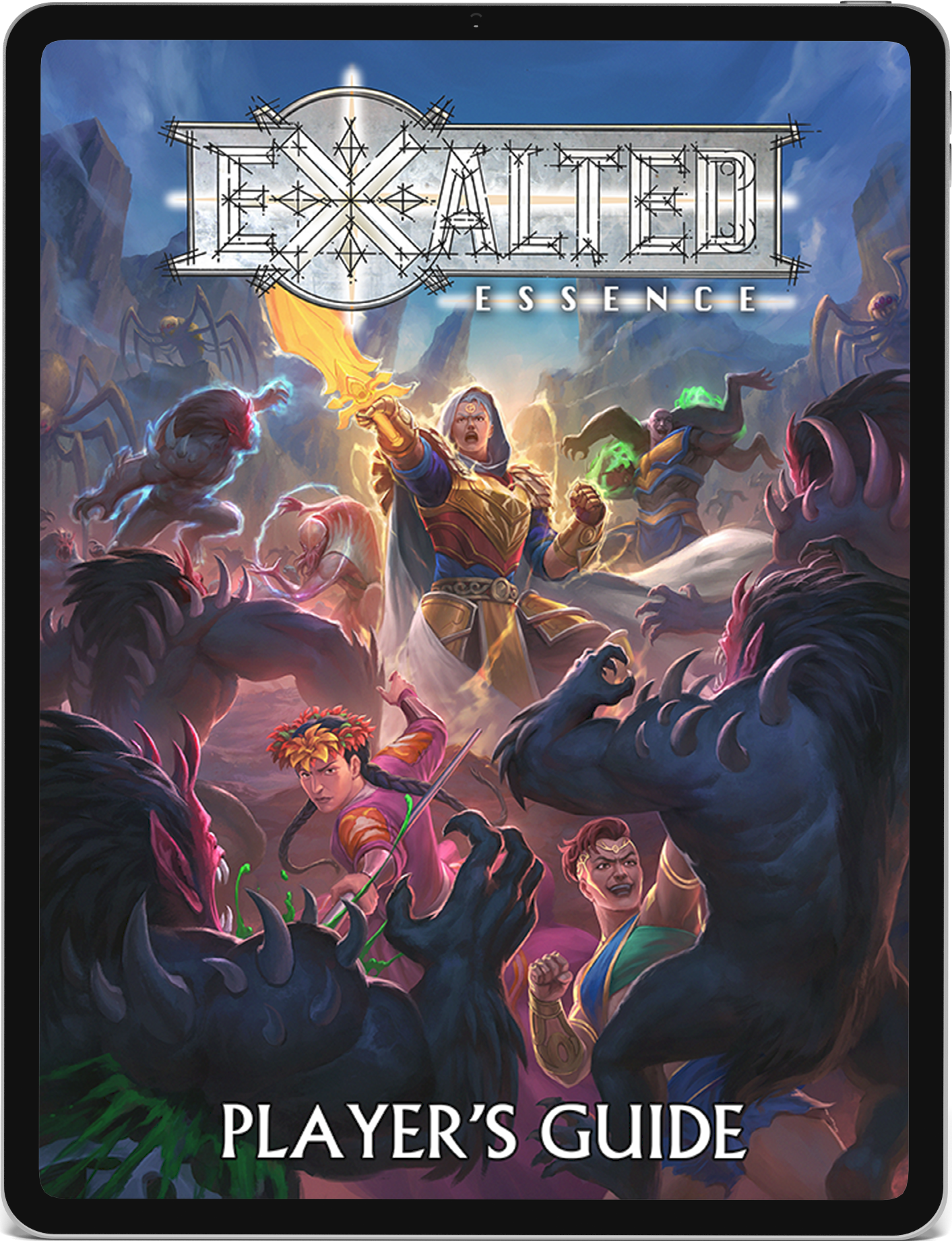 Thanks to your support, the Exalted: Essence Player's Guide has been funded and will get a fully-developed PDF, hardcover AND Deluxe hardcover release! Let me quickly switch into my Exalted mode...