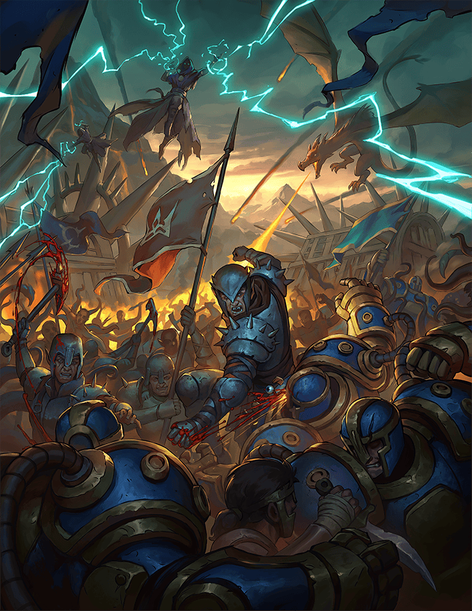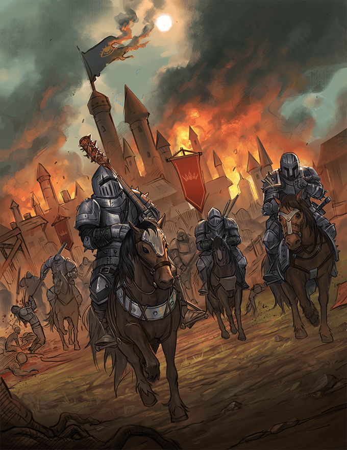Appendix I-V - Storyguide aids from quick encounter tables, battlefield systems, warfare mechanids, and a list of infamous dungeons.