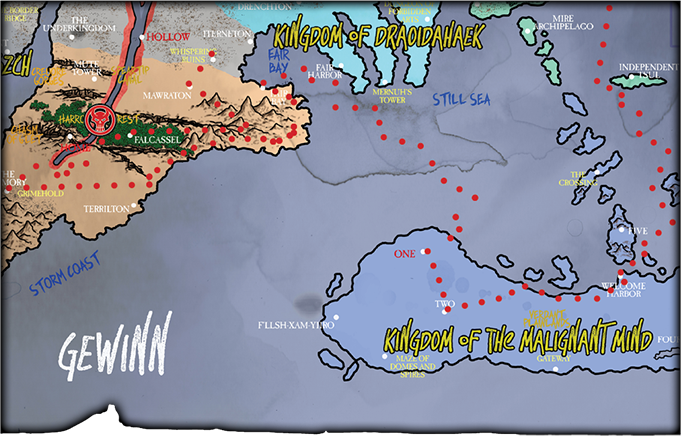 We left the Magi’s Hands with a stipend and sailed via the Still Sea on to the Kingdom of the Malignant Mind, where the ship’s captain was due to make a one-day stop. I persuaded him to remain in dock a little longer, as I wanted to explore this most mysterious of kingdoms. Few who have visited this realm write of it in detail, perhaps due to its reputation for mentally subjugating anyone who dares remain.