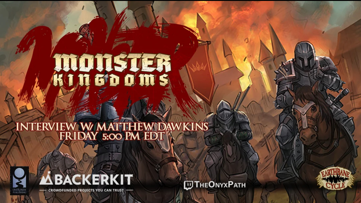 First up, let's talk about something coming later today on Onyx Path's Twitch channel. And then let's look at the Gentleman Gamer's videos about Monster Kingdoms.