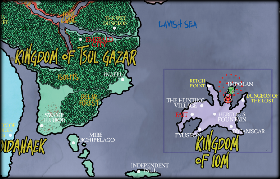 We never left Iom. For a season we hiked through Tsul Gazar, entered the Nithera Empire, encountered people, places, monsters, and acquired treasures and Sheos even seized a crown, but it transpires everything we have lived through was an illusion. We are prisoners of Iom and my greatest source of frustration is that I do not know when this imprisonment began. Was it when we entered the kingdom? Was it when we ate the cakes? Was it when we reentered the witch’s house? Was it when Valenao stole the keys?