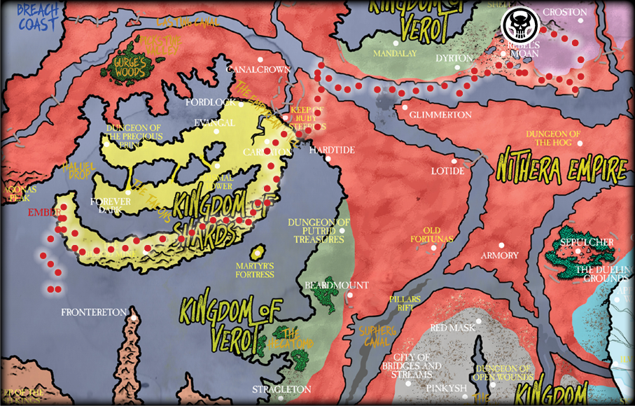 To describe myself as stunned would be an understatement beyond reckoning. I thanked him profusely, groveled like a fool, and was soon thrown from his skiff onto the southern bank of the Lasting Canal. I did not know this place as I did others, and so I spent many days wandering alone before discovering the largest amassed army I have ever witnessed. Legion upon legion, banners fluttering in the wind, monsters and men, weapons, armor, and siege engines by the thousand. I tried to identify who they were attacking, but I came to understand they were there preparing for a massive assault that hadn’t yet begun. The target: the Kingdom of Shards.