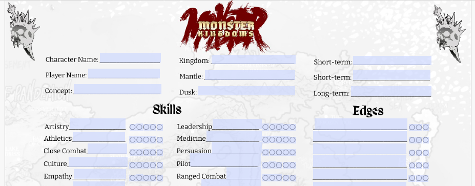 Since we're in the character building portion of the game, it's not a bad idea to have a character sheet to start scribbling down your ideas and choices! One of the writers on the game, Chris Jones, has put together this awesome character sheet for you to use when you pick your paths!