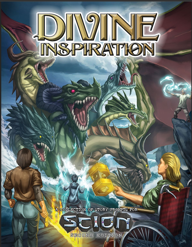 Divine Inspiration is a tome of interconnected scenario prompts for Scion Second Edition. It provides hooks, plot seeds, and plot packs for Storyguides to use in any campaign, across all tiers and lines, whether the heroes are a Band of pre-Visitation Scions or Titanspawn reaching Apotheosis.