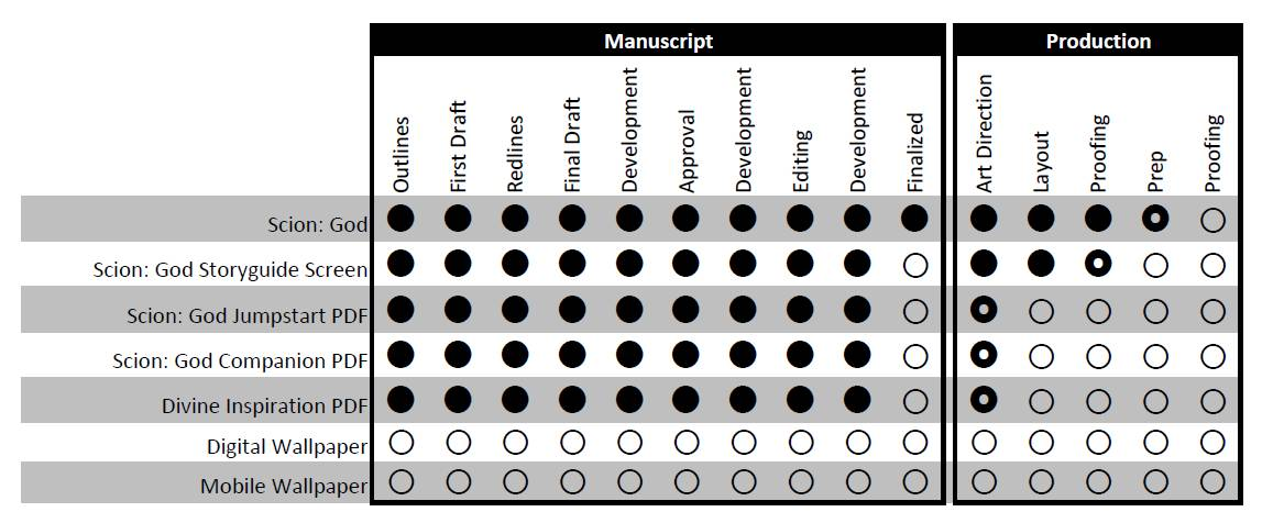 No major changes since last month. Rich has talked about some of the challenges of locking down a print partner in these turbulent times in the past few Monday Morning blogs (here and here) and it sounds like some of the issues for Scion: God have been sorted and we should see that move to the printing phase soon. I'll keep you updated as info comes in.