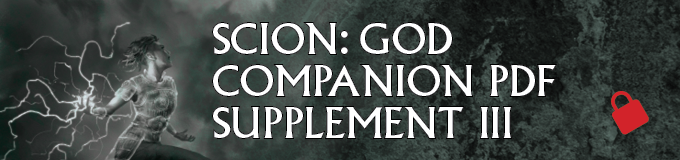 At $100,000 in Funding – Scion: God Companion Supplement III – More on Realms! The Companion supplement will expand and clarify rules around Terra Incognita, Realms, and Sancta. Rules and guidance may include information on ruling over Realms, creating or destroying Realms, Realm Conditions, and Realm challenges.