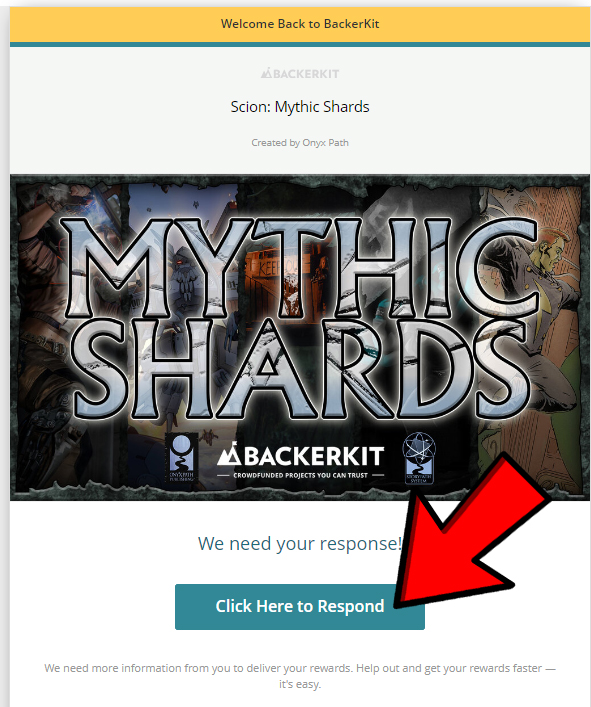 If you need to review your information or pledge status, you can return to your survey by clicking the link in your survey email or requesting your survey link under "Lost your survey?" on our BackerKit project page at https://scion-mythic-shards.backerkit.com/