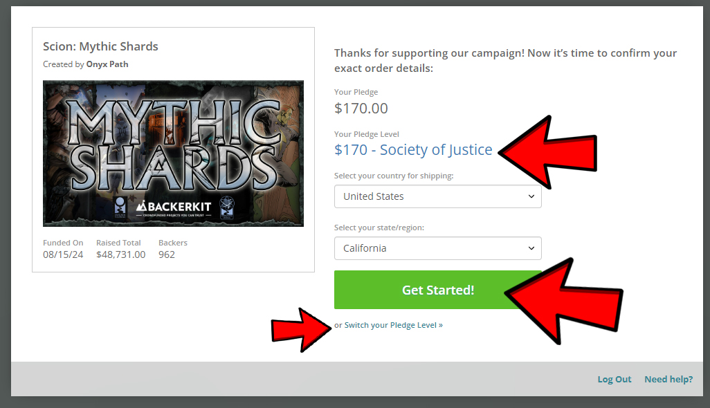 Once you've confirmed that your Pledge Level is correct and where you want it to be, you can GETSTARTED with your BackerKit Pledge Manager Survey.