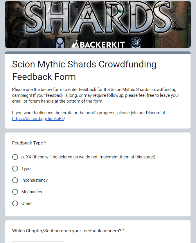 So, welcome to Crowdfunding by BackerKit! Welcome to these incredible new ways and spaces to play Scion! Welcome to Scion: Mythic Shards!