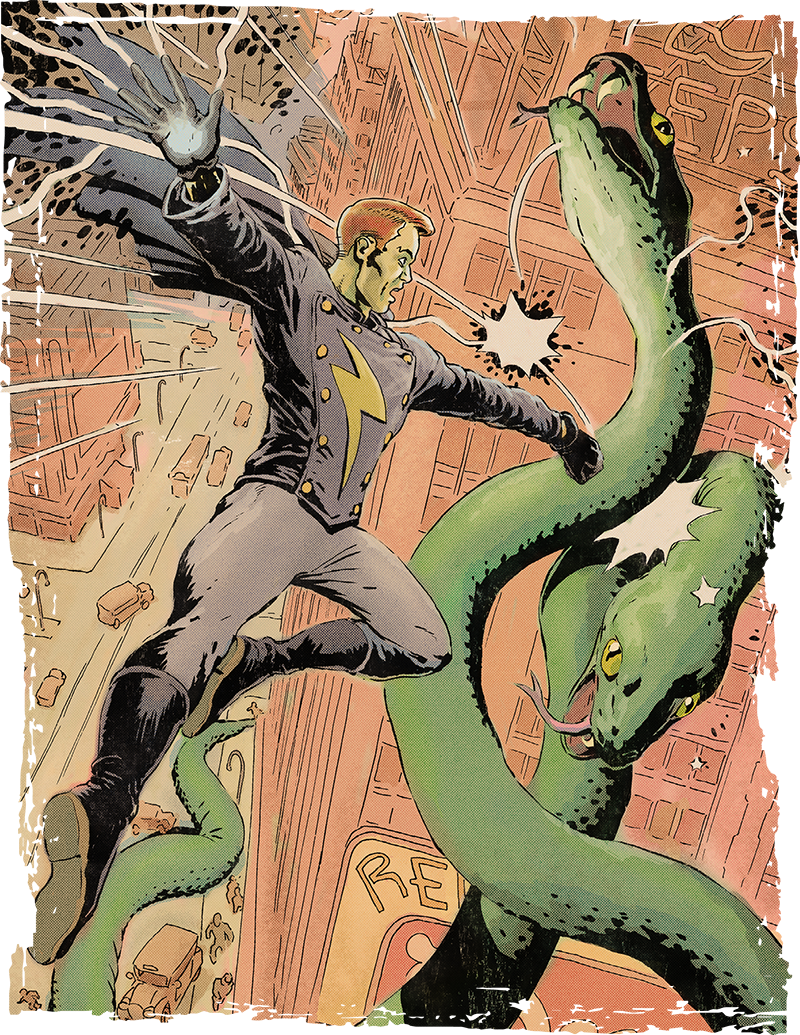 Zeus has fallen. Apep roars triumphant and marches his army of Titans, Titanspawn and evil doers to conquer the World. Governments, militaries, and law enforcement can do little to stop Apep. All the World is watching and know that Gods can be killed. People are terrified of what tomorrow will bring because who dares to stand against them? You — and other Scions like you answered the call to rise up and openly fight against the forces of evil! Divinity courses through your veins as you wear colorful costumes and a mask to inspire the masses, because you heed the call to action — you are a superhero, bringing order and justice in a World desperately needing it. The World of Four Colors is bright despite Apep’s looming shadow and carries the hope and nostalgic whimsy of golden and silver age comic books. Four Color Scions games operate at the Heroic and Demigod Tiers with superhero teams reaching God level play as they work together to dismantle Apep’s plans be it an army of malevolent robots, death rays, or a gigantic meteor hurdling towards the Earth.