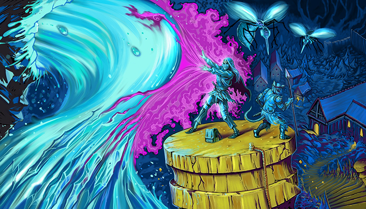 Kaos is everywhere in the World Below. It permeates the stone and air, infuses the water and darkness, and is part of every inhabitant whether they be plant, animal, or something stranger. Kaos grows stronger the deeper adventurers travel. The strongest form of raw Kaos known to anyone within the World Below emanates from the Well, but some whisper that even the Well isn’t the source of Kaos, as it’s close to the Well that Kaos and Abyssal energies crackle and crash in their permanent elemental battle. Yet, the Well is as close as living beings can come to pure Kaos without being torn apart and unmade — or worse, made into something alien and unknowable.