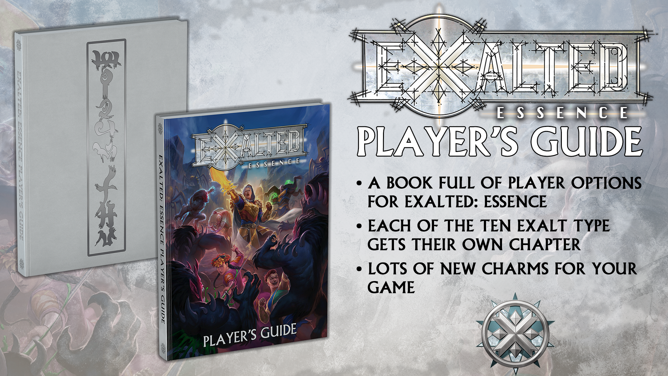 The Exalted: Essence Player’s Guide is a book chock full of player-facing content. Within, we’ll walk you through how to think about playing your character, what kind of person they might shape up to be, and how to consider their strengths and weaknesses as well as Intimacies and Virtues. Beyond advice for roleplaying, each chapter also contains dozens of new Charms for characters to take, shaping the outcome of your campaigns.