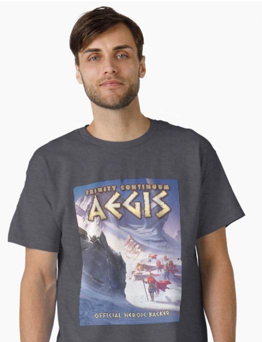 So, this Stretch Goal during the kickstarter campaign was for a special available-for-a-limited-time Crowdfunding Backer TC: Aegis T-shirt, but really there are more than just T-shirt options there (and more colors as well!)