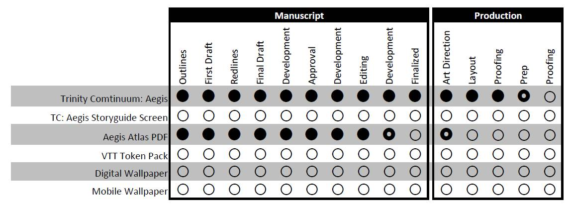 Nice to move the Backer Shirt to the delivered list. Now that the TC: Aegis file is finalized, the team is prepping for the eventual print run. Onyx Path is buildng a relationsihp with a few new printer partners, so it may take a little extra time, but I'll keep you updated as information comes out.