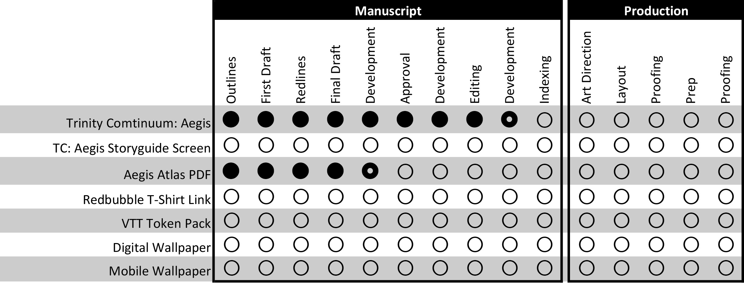 Some movement on our Stretch Goal supplement, the Aegis Atlas. Last month we showed that the writers were in the middle of the revision process, going back and forth with the developers and incorporating their "redline" suggestions. Now the manuscript is finished with the writers and back in the hands of the Developers where they take it and turn all of the different parts into one cohesive whole.