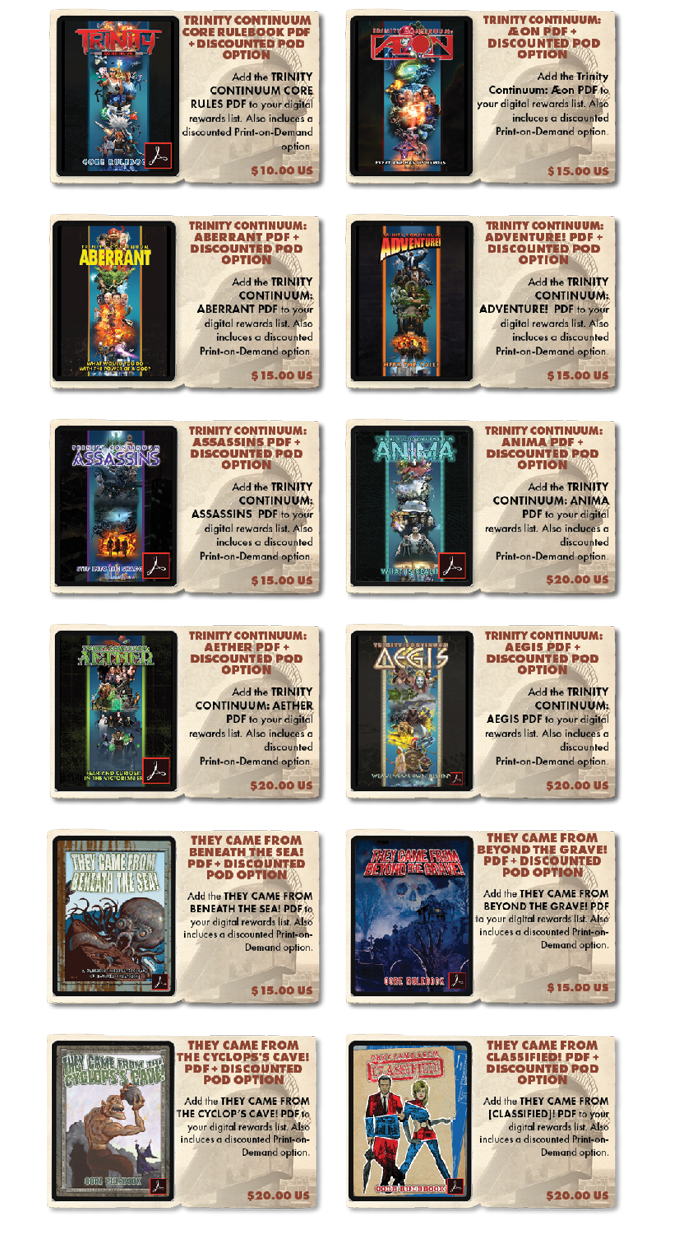 Your link to claim these digital rewards will be sent out by our BackerKit pledge manager over the nextweek, as noted above. Since we are using our partners at DriveThruRPG as the hosts for these, you will need to set up a DriveThru account if you don't have one already. If you encounter any problems with downloading your rewards, please contact DTRPG's customer service to resolve the matter, they've always been top-rated for customer service. http://www.drivethrurpg.com/contact_us.ph