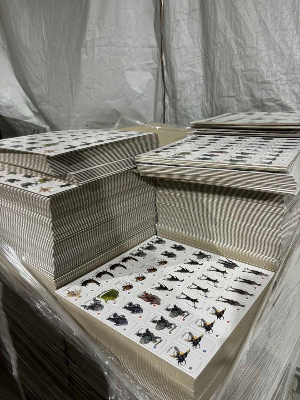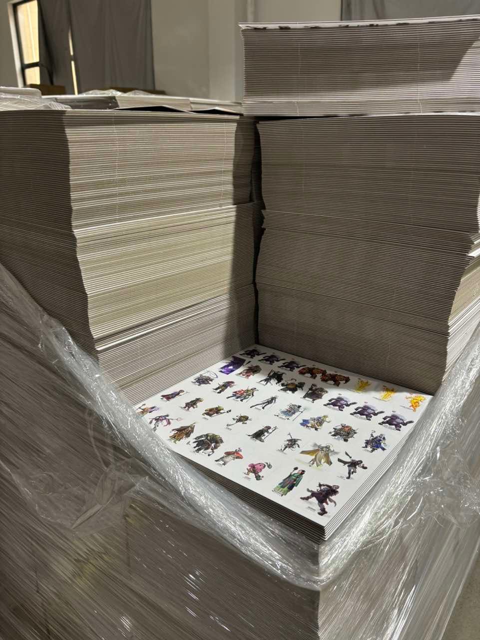 A top-view of a pallet of the map tile sheets.