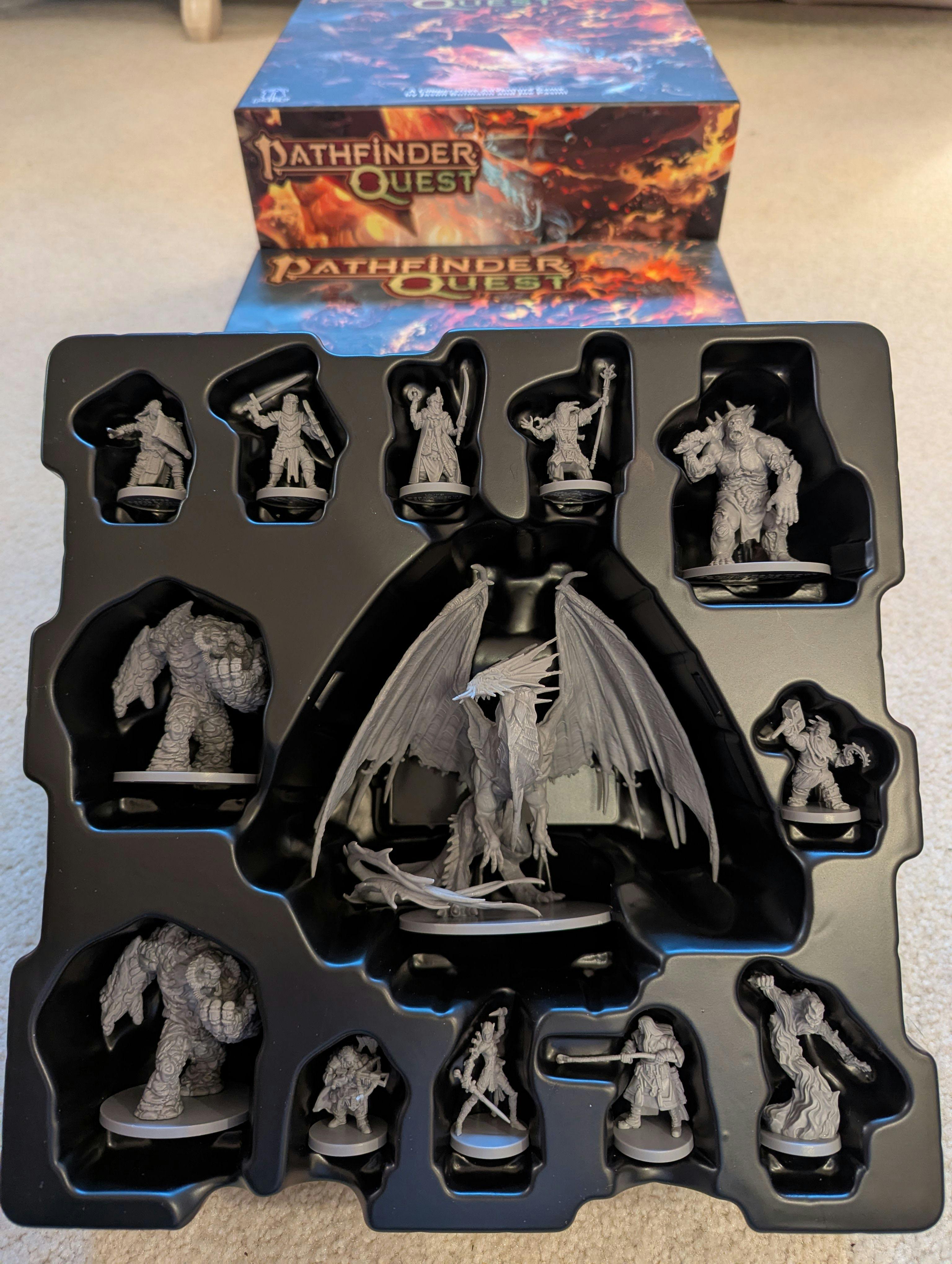 The miniatures on top of the Pathfinder Quest box.
