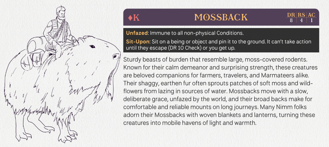- The 52 Creatures and Folk entries are done! In addition to the 2 abilities of each Background and the 40 abilities available for advancement, each creature also has 2-4 unique abilities as well!