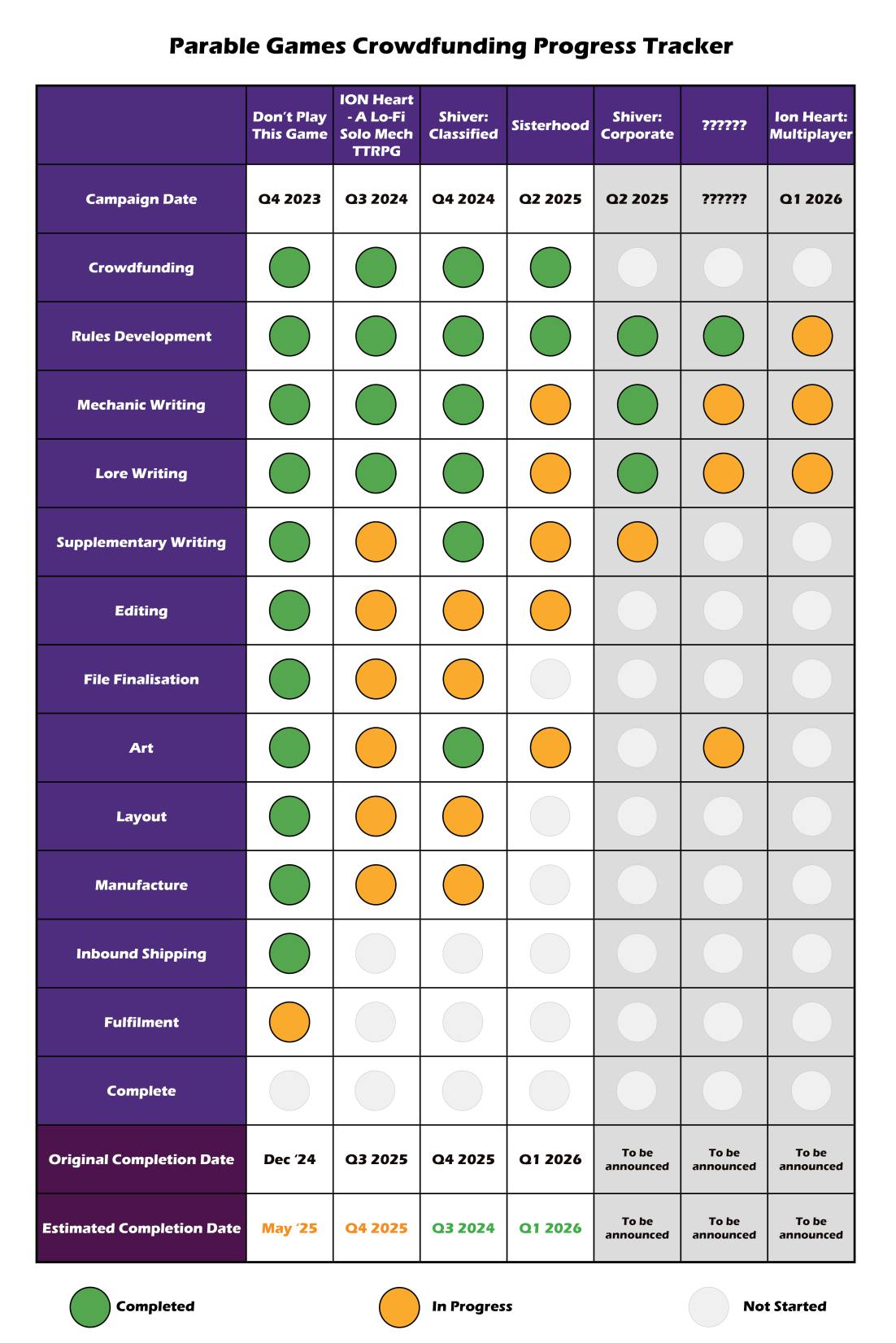 We're hard at working writing and laying out the ION Heart Core book, which we will include an update for below. However, we thought we'd fill you in on the current slate of Parable Games projects first so you have an idea of what we're working on.