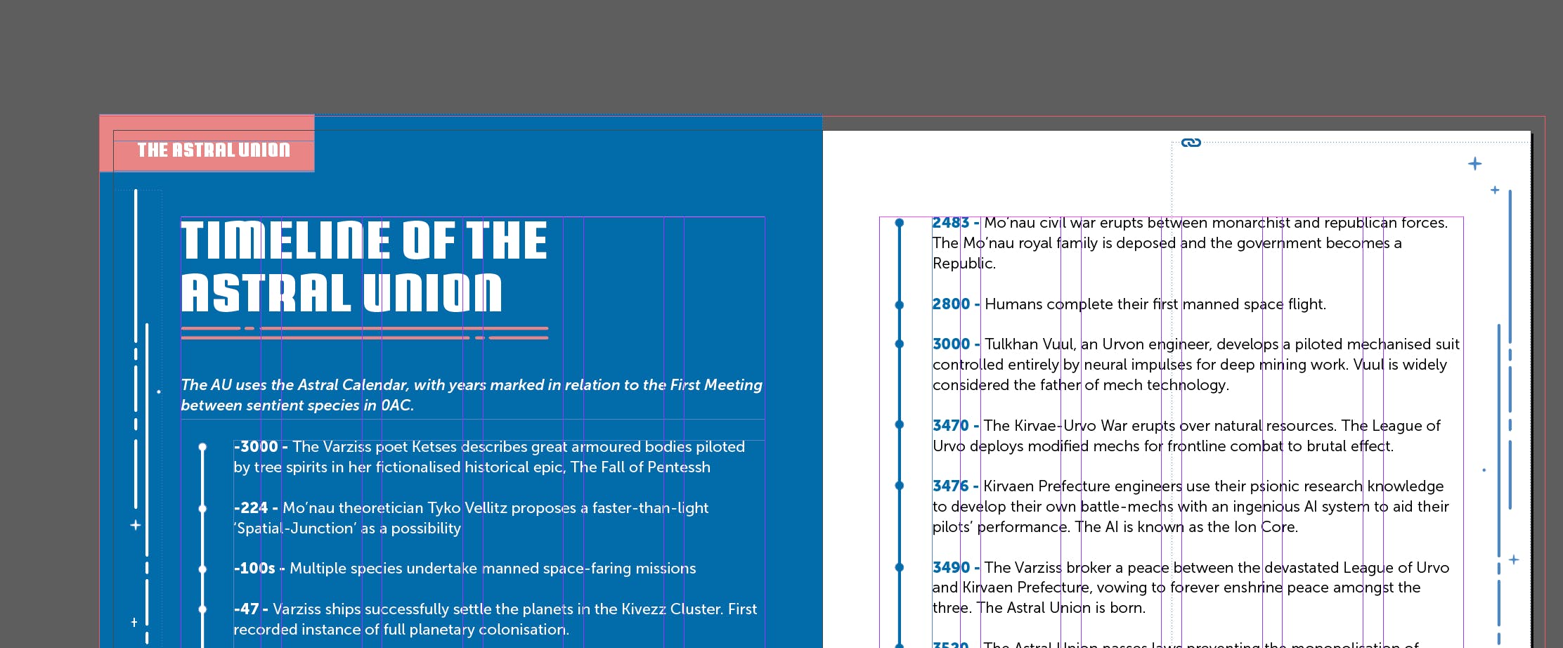 As promised here is another peak inside the ION Heart Core Book, with another look at the expanded lore section. If you're anything like us you're a big fan of in-world timelines, which we are including in the book!