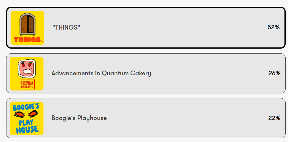 There was an overwhelming show of hands (most even still attached to arms, if not torsos) for the amazingly weird department of "THINGS"!