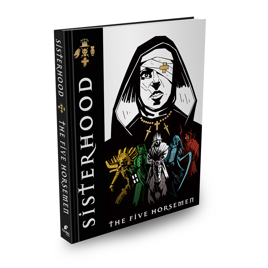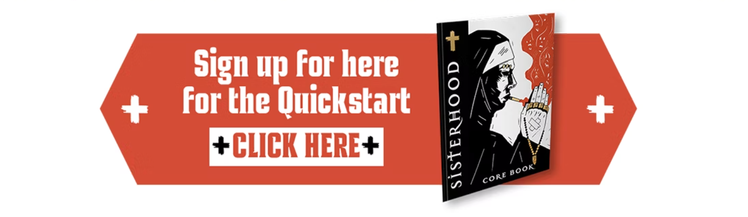 Sisterhood is a multiplayer tabletop roleplaying game where everyone plays as a nuns. But not just any nuns. Gun toting, cigarette smoking, demon punching nuns. Create a crack team of sisters and try to stop the apocalypse.