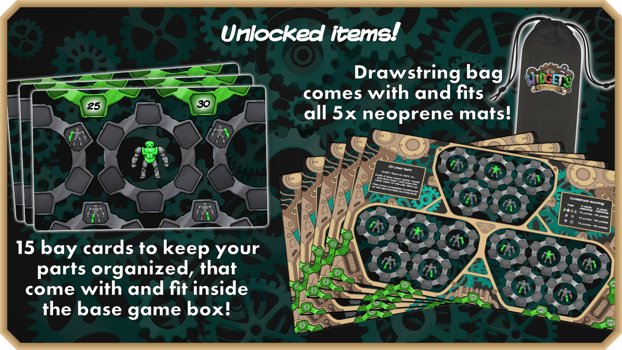 Bag for mats: For those who love that super-deluxe neoprene mat experience, but also longed for a good way to store them, we've got great news for you too! We previously discussed possibilities of various forms of custom boxes that could hold both the mats and the original game box/components, but the logistics and costs there proved too much for this campaign. Instead, we're happy to include a printed draw-string bag that will fit all 5 neoprene mats, at no additional cost!