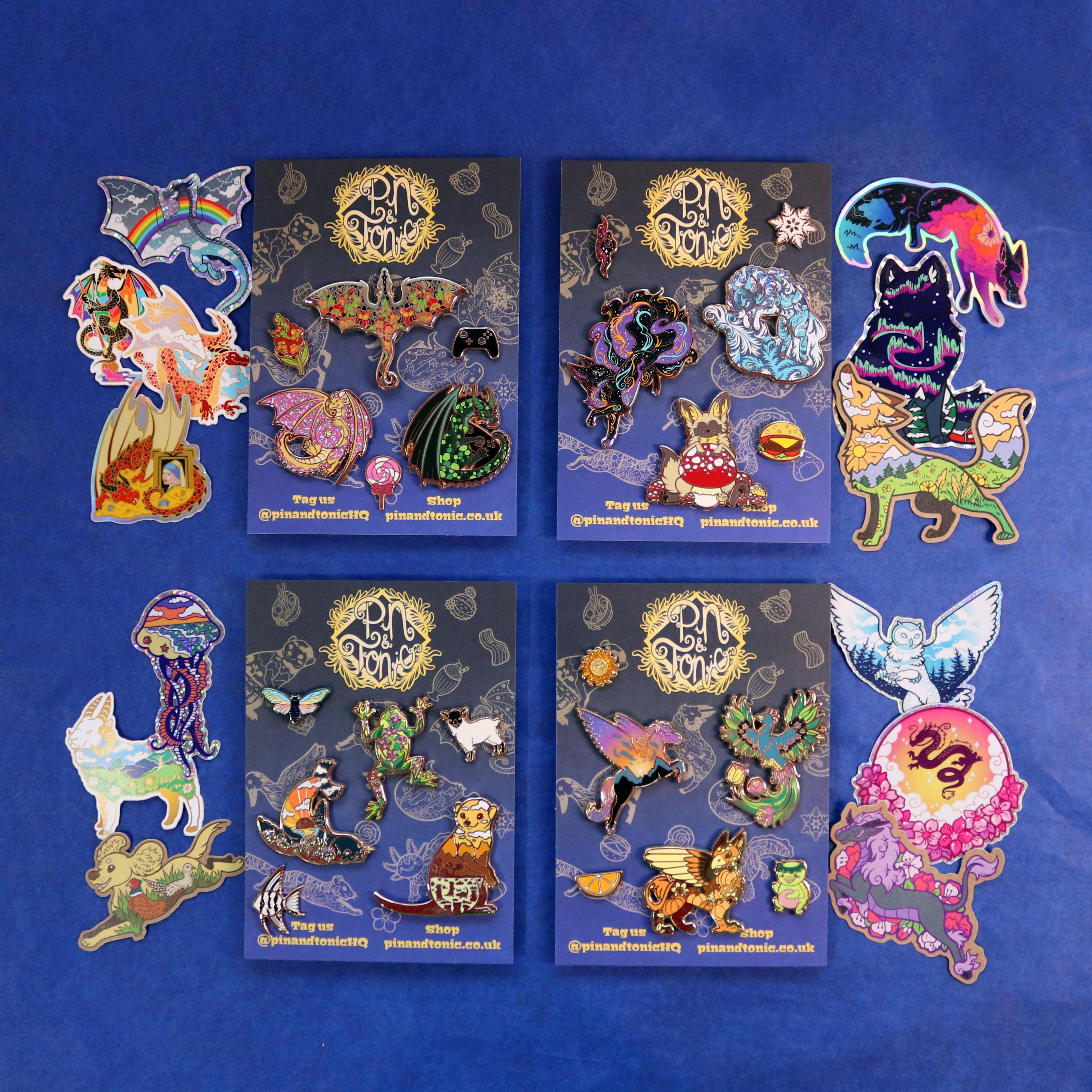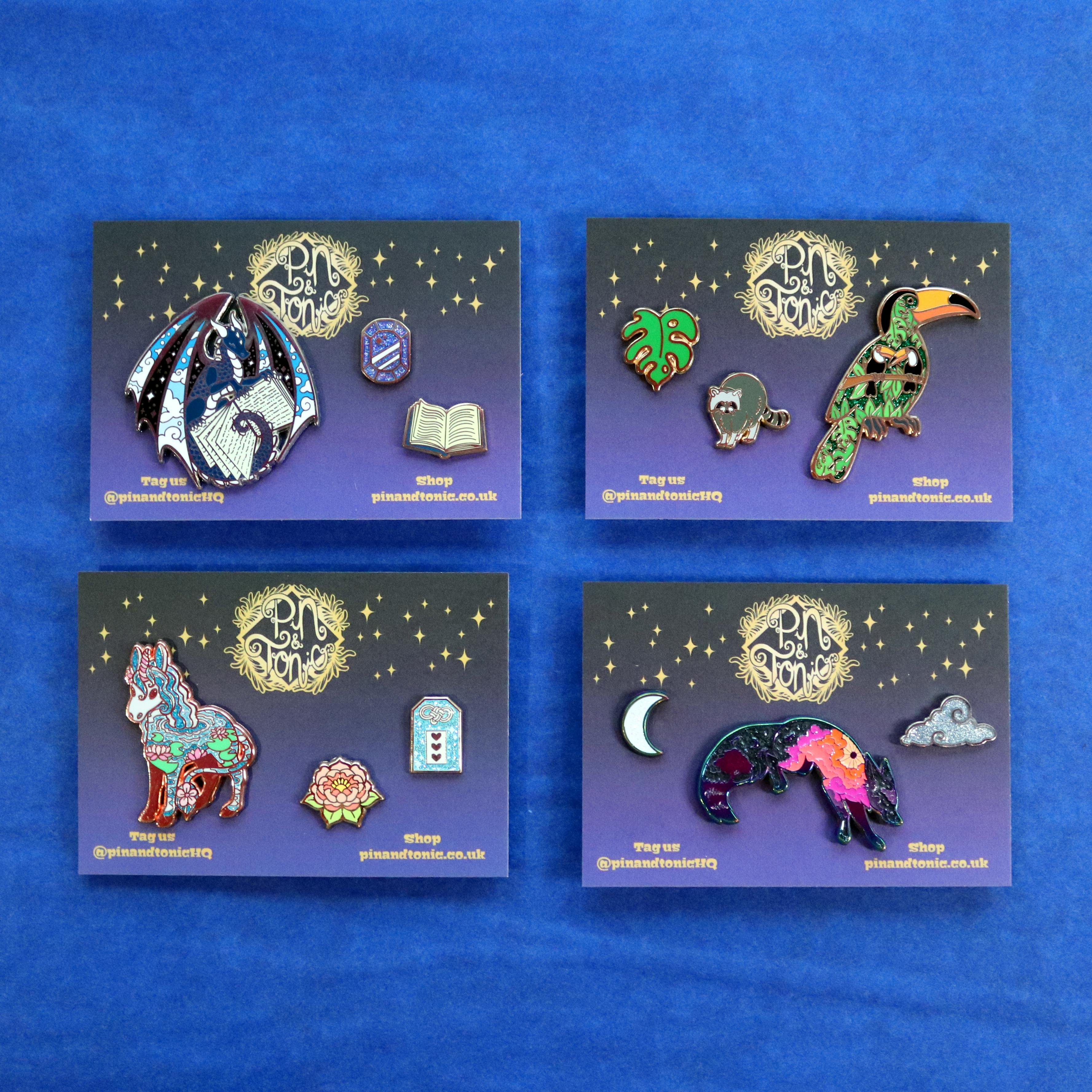 Click the theme name above to go to my website, where you can see the collections pins will be chosen from! Mythical Creatures and Animals will be chosen from across my full design catalogue.