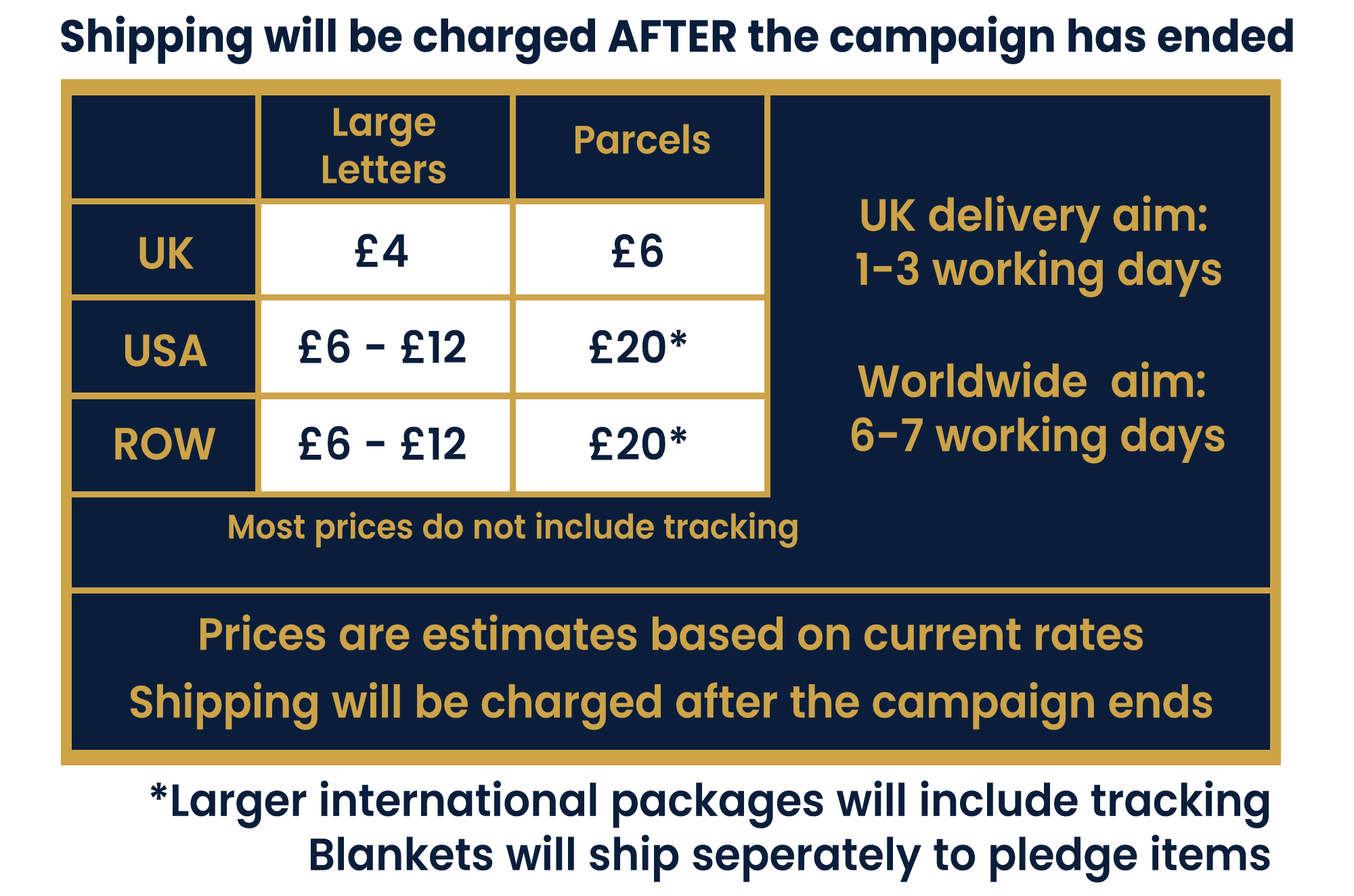 Shipping will be charged AFTER the campaign has ended and will be shown at the survey stage.