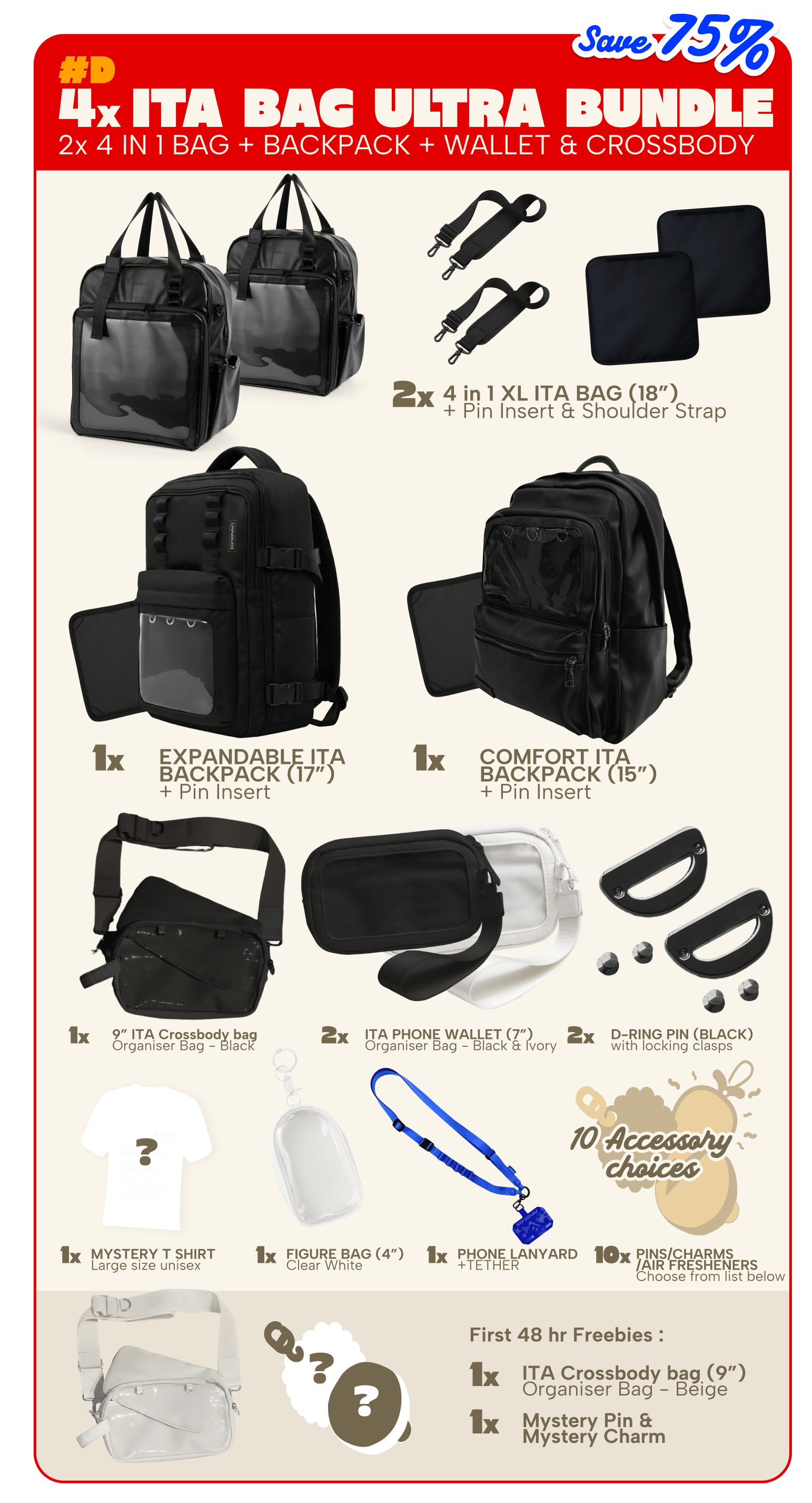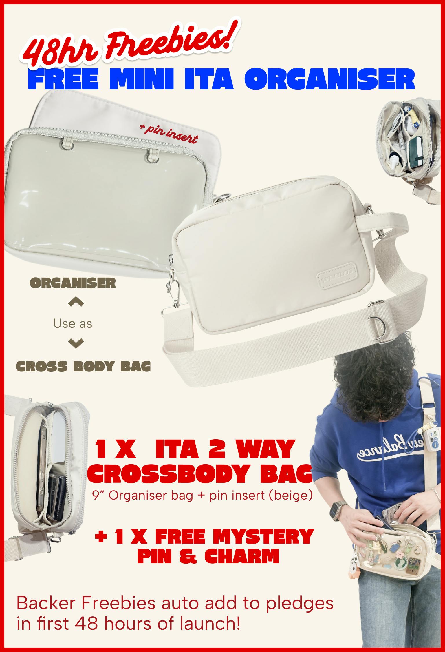 LTD BAG & EARLYBIRD FREEBIES QUANTITY Our 4in1 XL ITA Bag will be available in very limited quantities, as we are only making 100 pieces of this bag so get your pledge in early to also benefit from our 48 hour Earlybird Freebies (Ita 9" crossbody organiser bag & mystery pin + charm) that will be included in every pledge level!