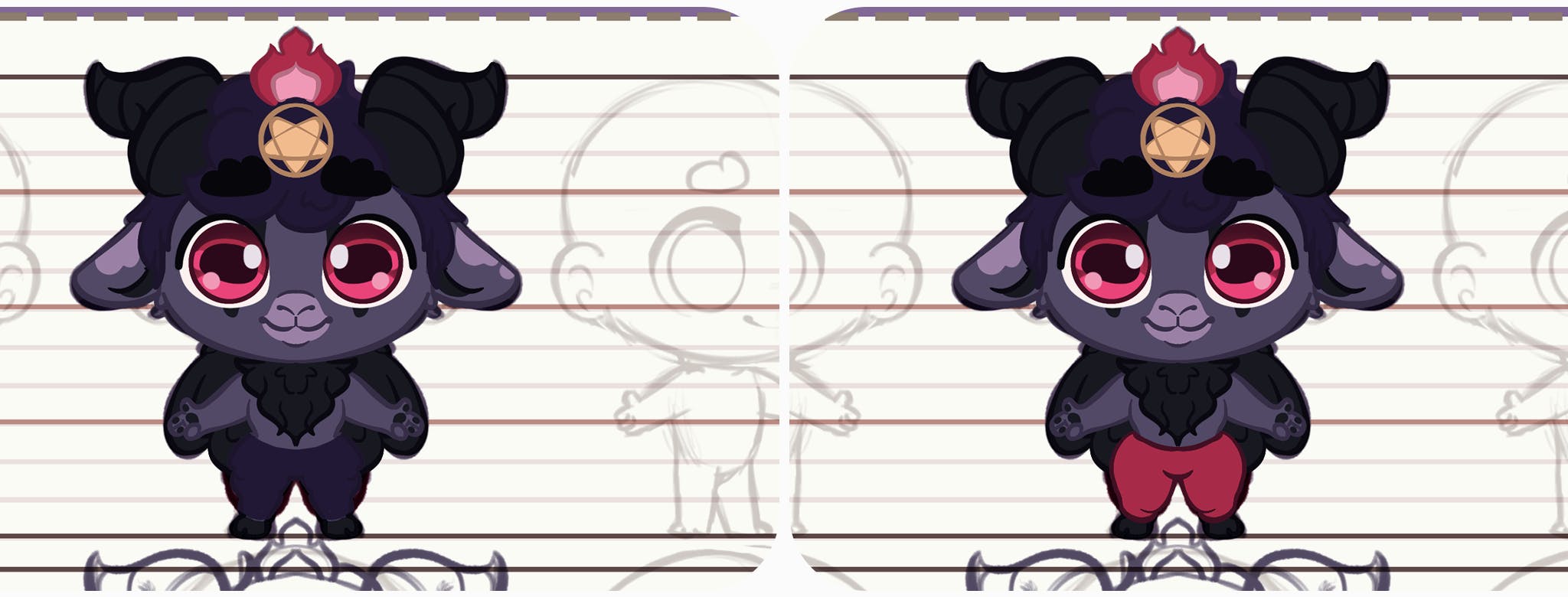 In terms of personality, Bebe Baphomet delights in learning and sharing intriguing tales and topics unknown to their friends. They particularly enjoy hosting campfire get-togethers, using it as an excuse to narrate these tales dramatically.