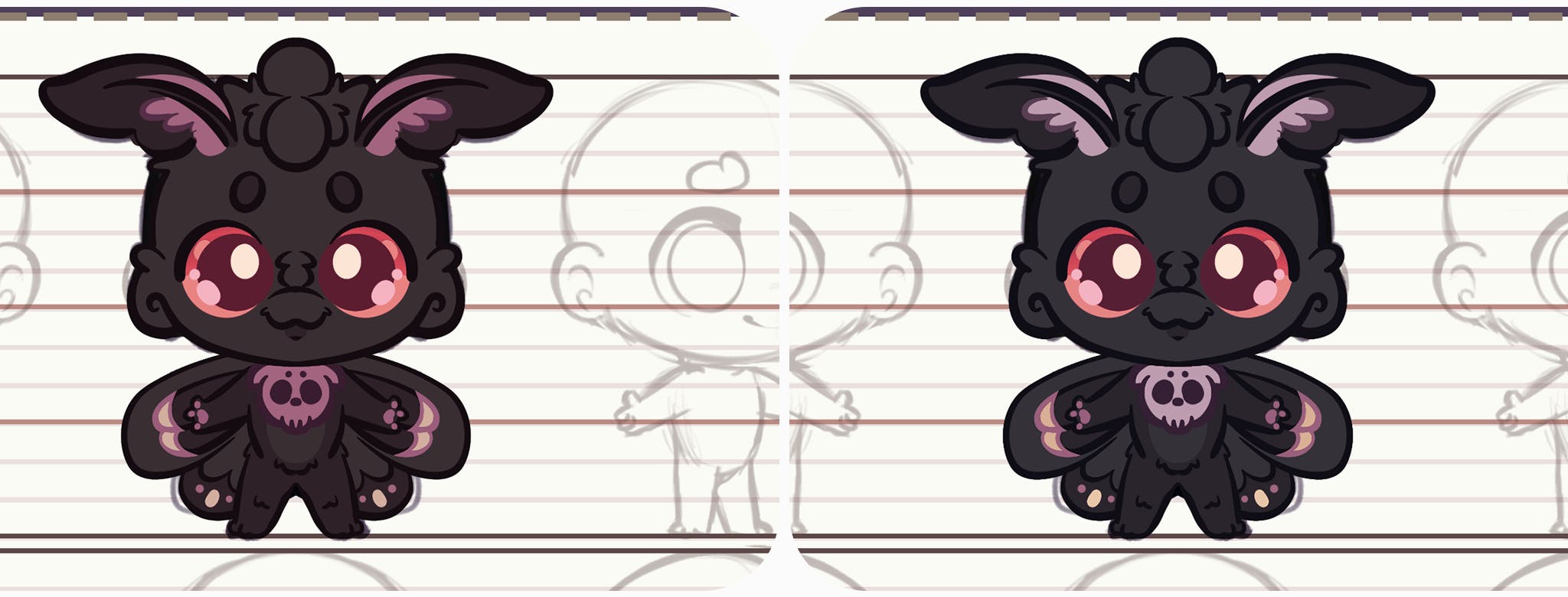 It's time to unveil the much-anticipated Mothman plush! This character's design closely aligns with the classic Mothman look, infused with a charming chibi touch. What excites me the most about his design are the possibilities it holds. I envision a future Mothman line where his coloring mirrors actual moths, like the Luna moth.