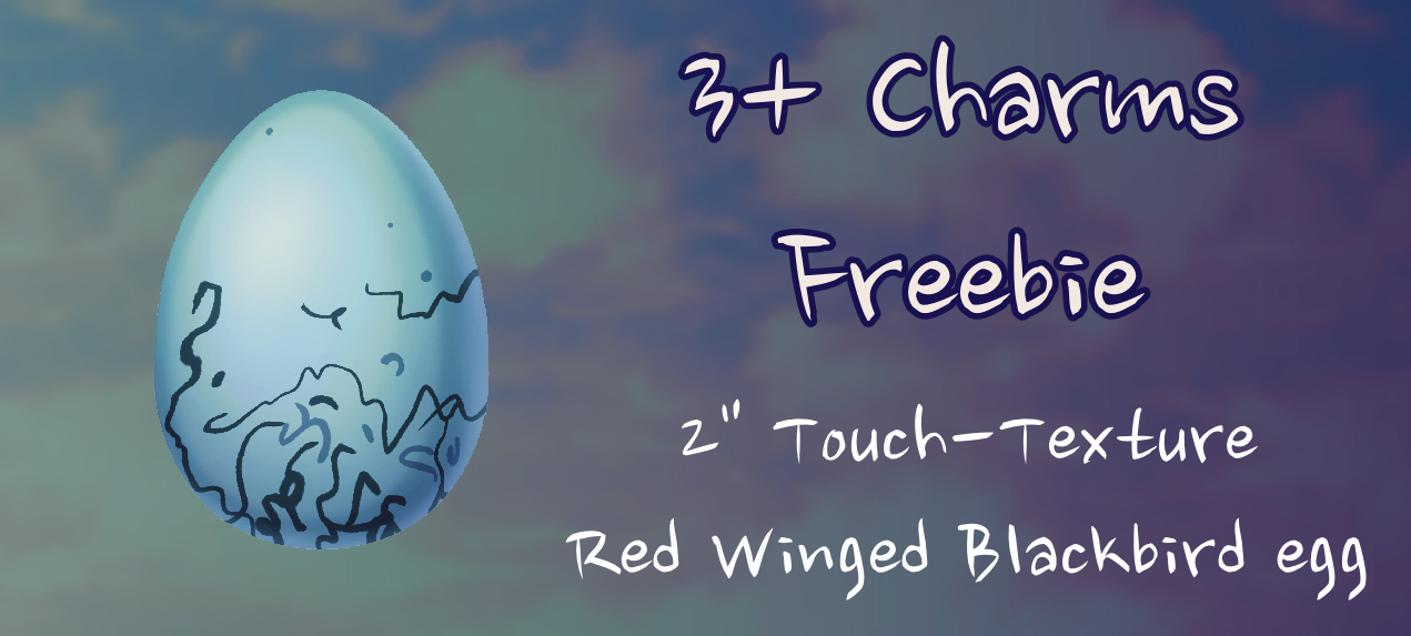 3+ Charms Birds Tier By selecting a tier with 3 or more Flapping Bird charms, you'll recieve a free 2" sticker of a Red Winged Blackbird's egg! You must get 3+ in the tier, add-ons do not count.