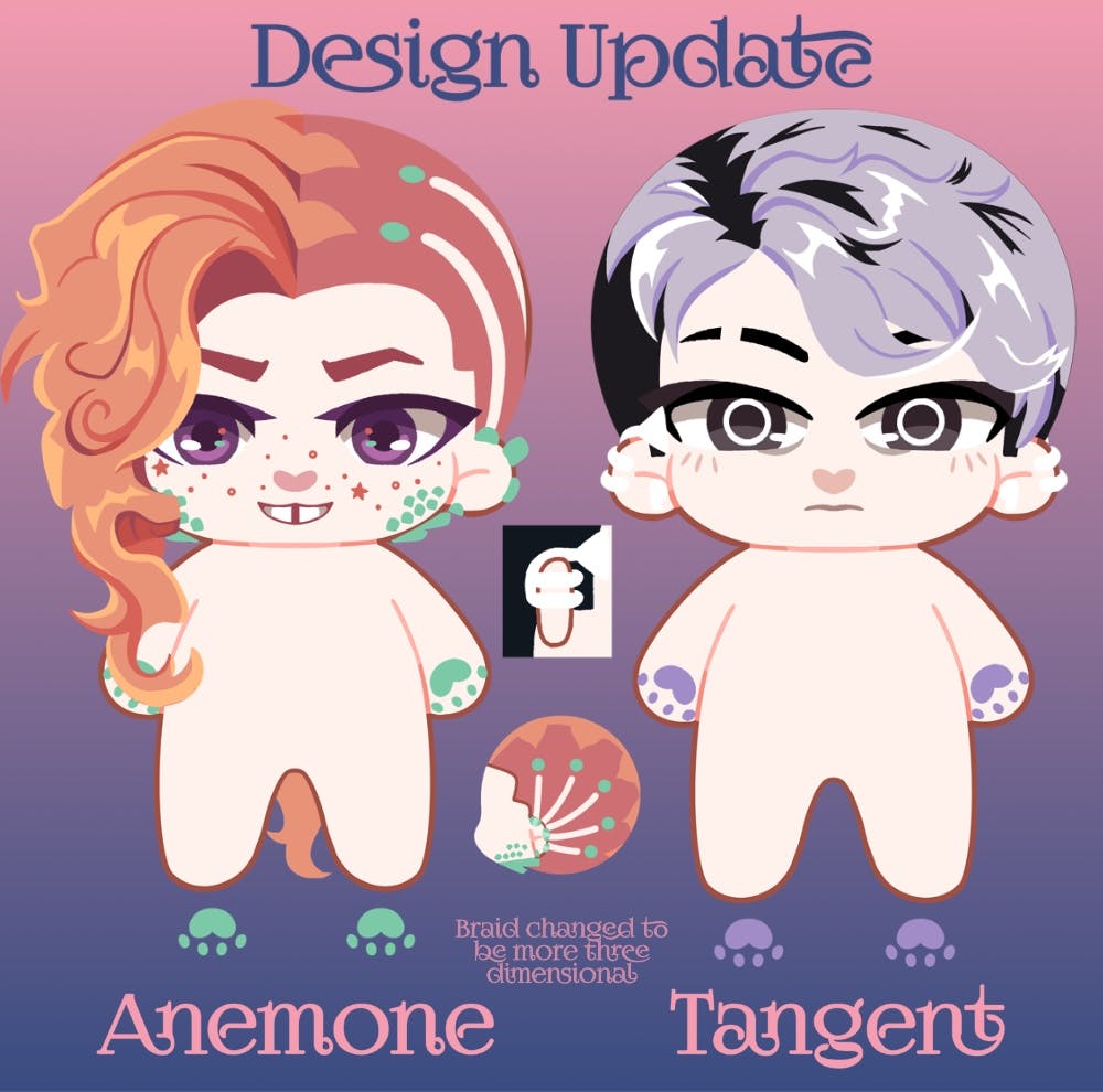 It is time for Tammy's big reveal! We already did an embroidery poll but as we now have to do paws for all of the plushies she deserves another so that is linked below! The plush manufacturer has gotten back to me on any changes that should be made to Anemone and Tangent so their designs have been updated and sent back to begin the facial embroidery stage! Anemone has more spread out scales and freckles as well as her braid being changed to become three-dimensional rather than embroidery focused. Both dolls now have paws.