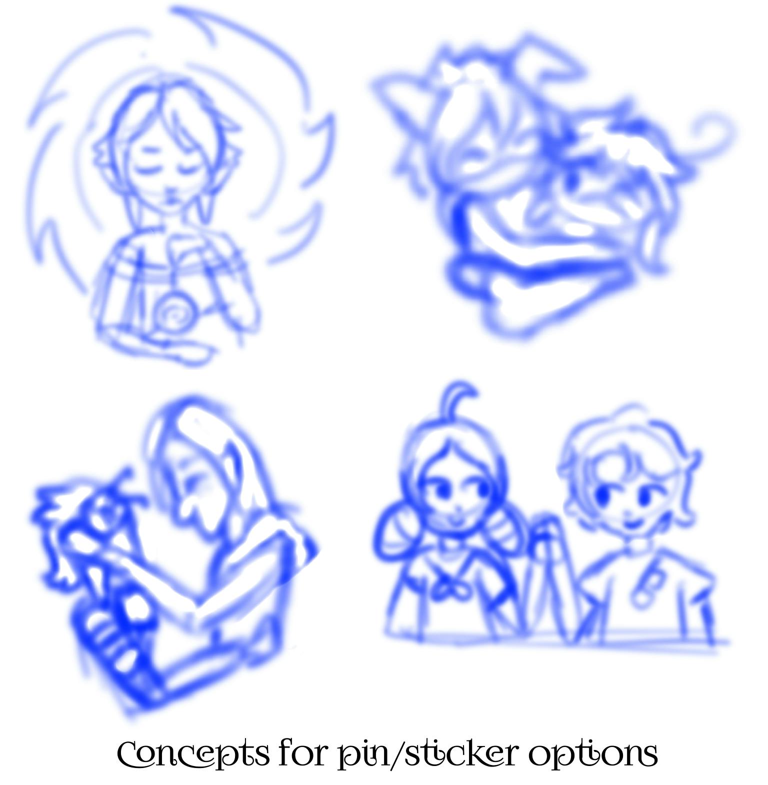 Here are some rough concepts on what potential new fluorescent stickers or enamel pins could look like.