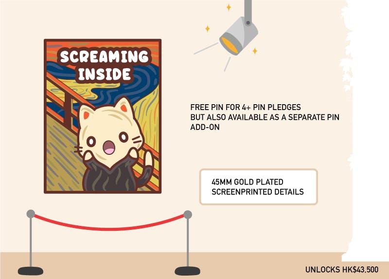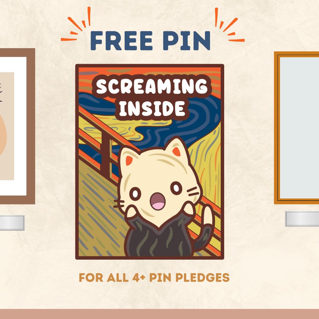 (4) Pledge for 4 or more pins pins (including add-ons) and receive an free SCREAMING INSIDE pin