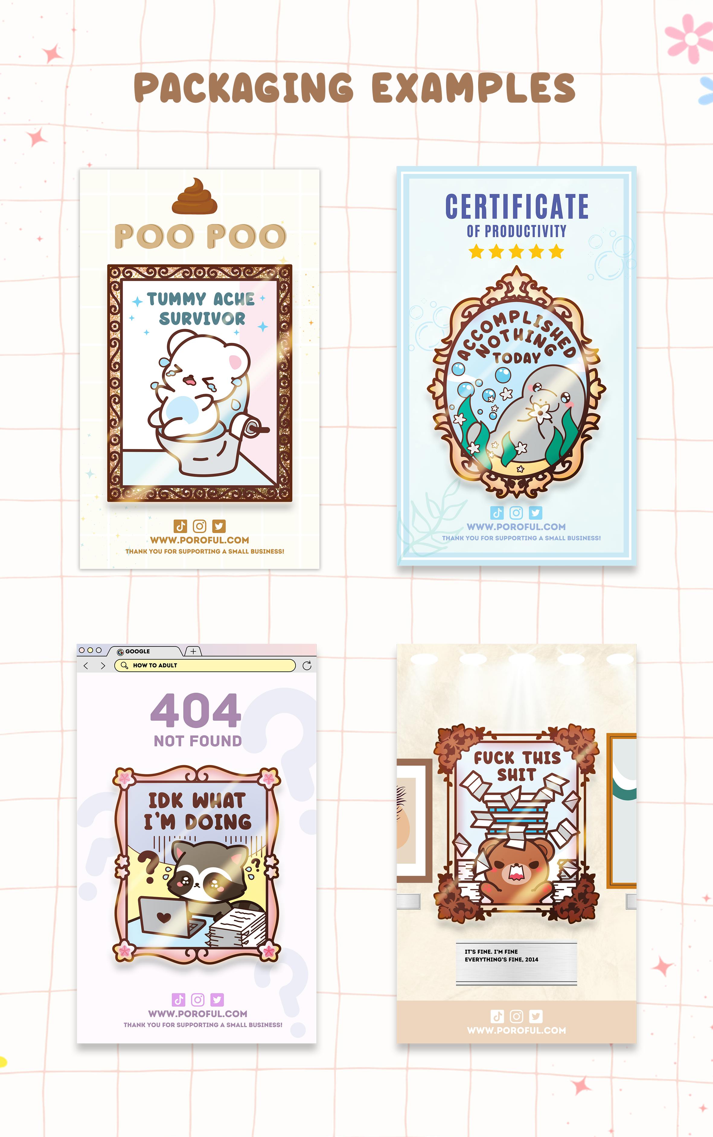 I'm Poroful and I'm so excited to bring this series of cute and sassy art frames for inspired by the times where you just wanted to throw in the towel and roll your eyes. This series of enamel pins are not just accessories; they're little trinkets of rebellion - pin them on your desk, your bags, or anywhere you need just a little dose of humor to get through the day :P