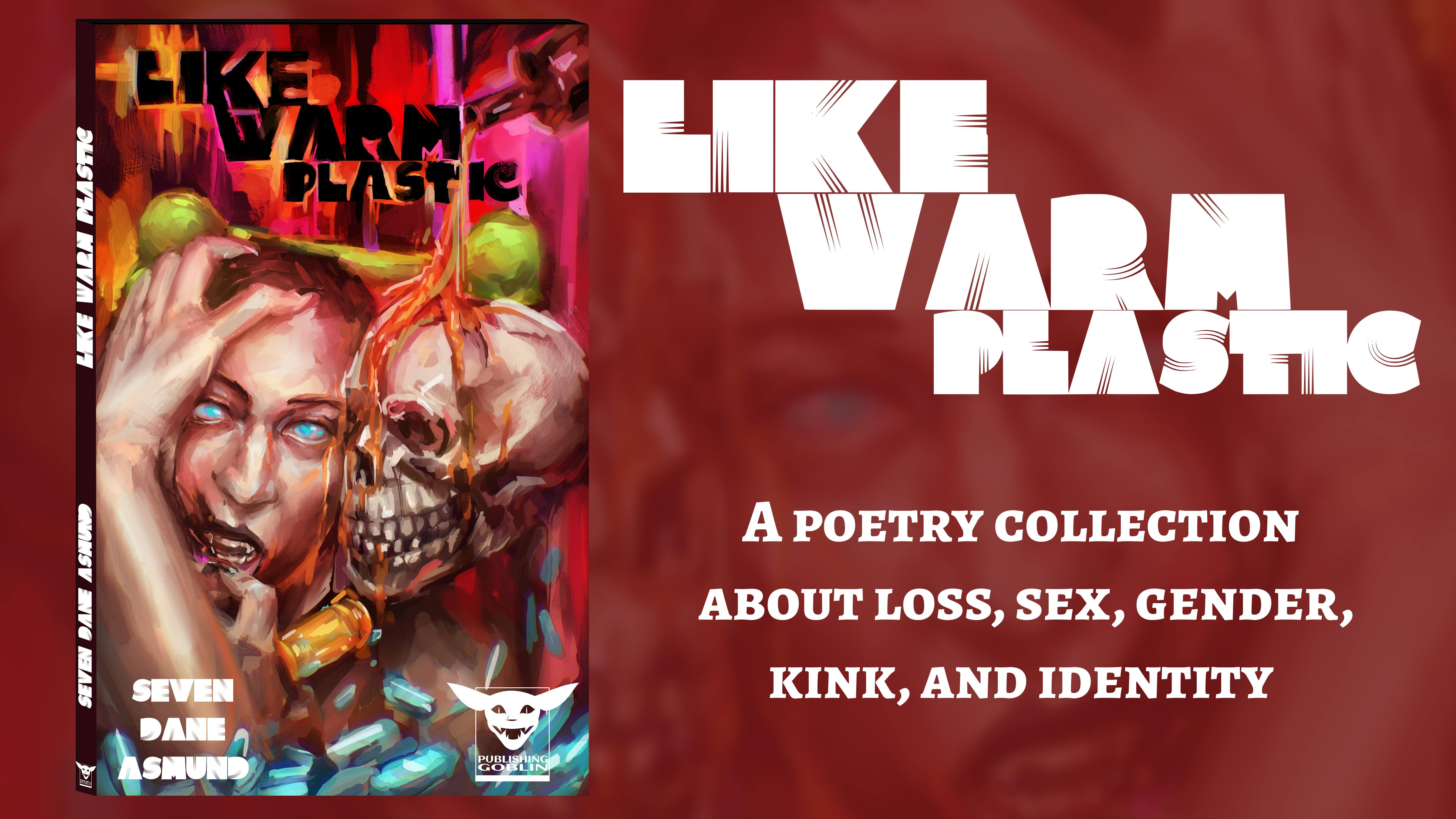 With an incredible cover by Reid Aster, Like Warm Plastic pulls you on my journey with me. A story told in poems. Tragedy, yes. Loss. A harsh objectivization of my body, of my sister's body, as I process what it means to lose someone. A stumbling out of womanhood into manhood, something I never felt at home in, but now yearned for. And a slide into sex, sweaty nights at the bars, and kink.