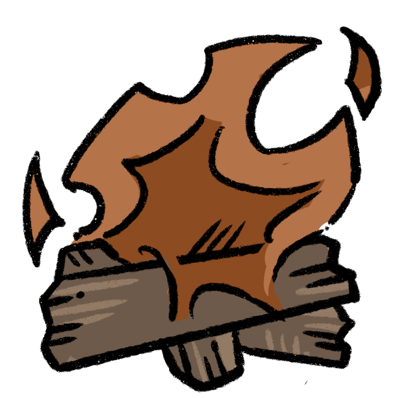 Campfire is the REST symbol. Cards that feature it show a way to use the card while taking a rest in-game, either at the campfire before the dungeon delve, or if someone uses a Rest action card. You can tell your allies a lie that will help them gain resolve, but it can hurt them in the end of the lie is revealed to be a lie.