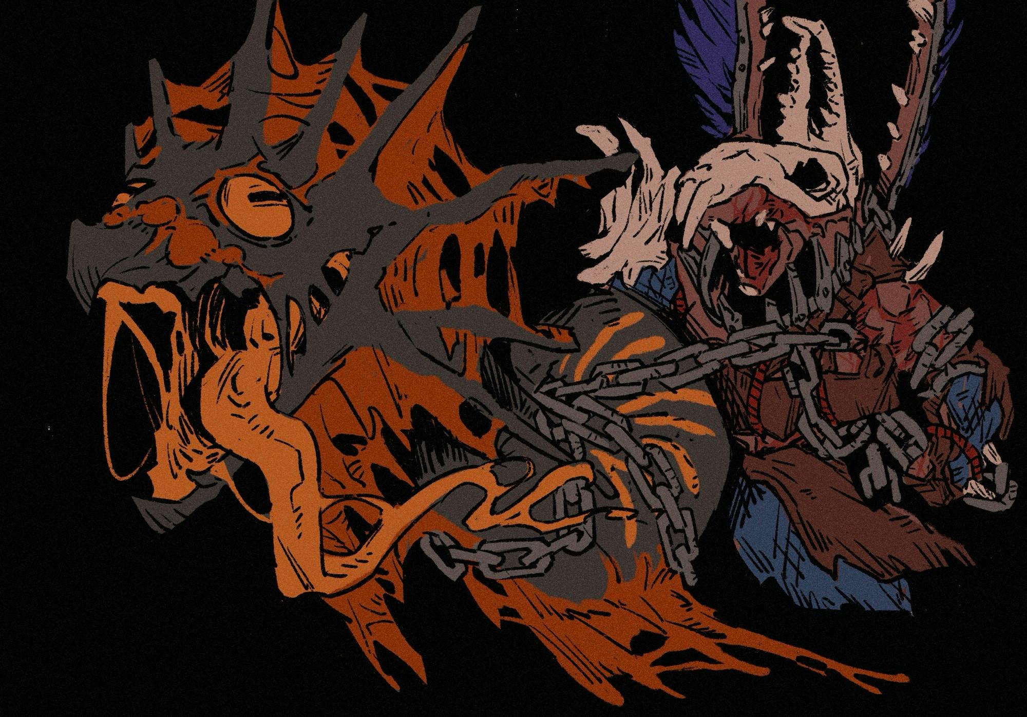 In case you've missed it in our social posts, Salty Water has been cranking out (unpaid?) art for this campaign on social media. We've got Ratsune Miku-- I mean the Maker of Hands, a precious widdle Organ Eater, a very Woe Be Upon Ye Malefact Bonecutter sicking his lizard mount on us, and a Jojo posed Caged Wraith, using his soul as his stand. I think they're just delightful and fun art, and shows how much Salty Water loves these characters and designs to just draw them on their off time! I very much didn't ask for any of the pieces, they're just for fun.