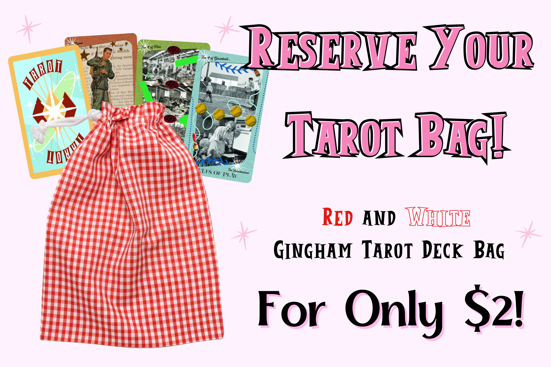And if you place a $2 reservation now, you'll get a gingham drawstring bag for your deck! So don't wait too long, this offer won't be on the table after launch!