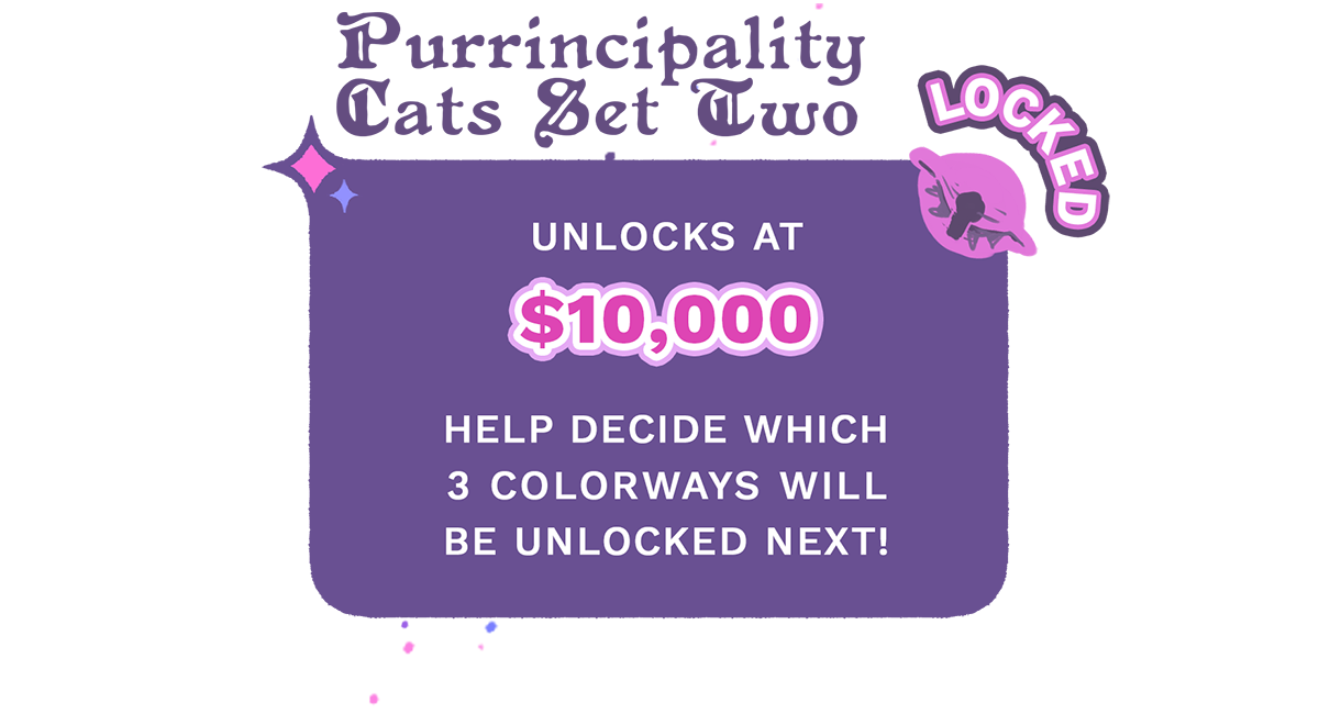 And fear not if your pick isn’t in the top 3! The next Purrincipality Cats Set unlocks at $10k, and we’re only about $1,300 away. I have no doubt we can reach it. 😺