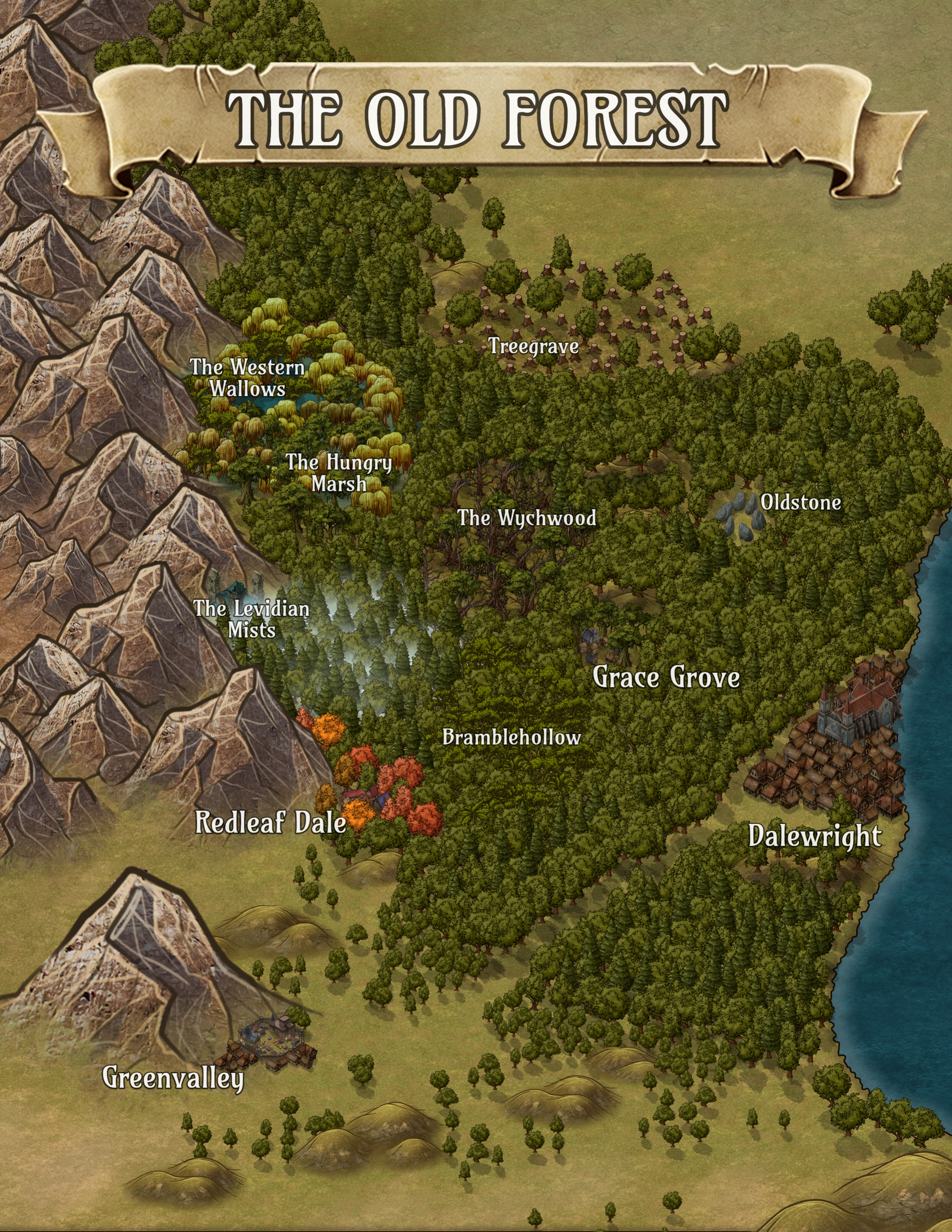 Grace Grove is home to Amelia Grace, the self-styled Queen of the Old Forest. A child of only eight years, Queen Amelia Grace enjoys broad popular support throughout the towns of the Old Forest despite her inexperience and her lack of legitimate claim to royalty. Chief among her supporters are the Merry Foresters, a rough-and-tumble mercenary group that gives teeth to Amelia's burgeoning monarchy.