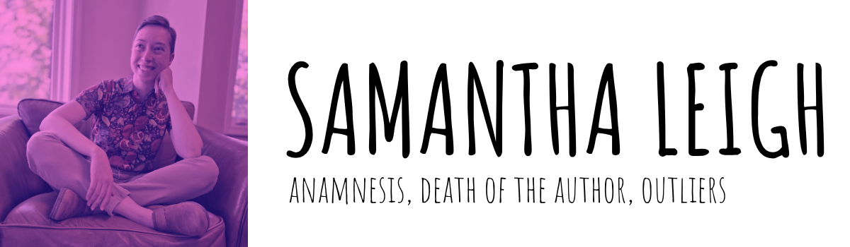 Samantha Leigh (they/she) is a tabletop RPG designer from Virginia. They are they owner of Blinking Birch Games and have published titles such as Anamnesis and Death of the Author. They've been a fan of absurdist humor since listening to Welcome to Night Vale in high school, and have published their own absurdist game, Outliers. Sam has also written for many other RPGs, including Cloud Empress, The Zone, and ECO MOFOS.