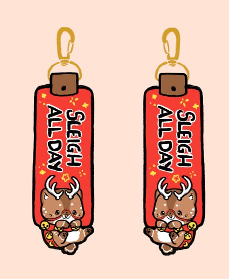 We had this idea and thought a keychain like this could be a cute addition! It's an embroidered keytag with our beloved reindeer cat 🐱🛷✨