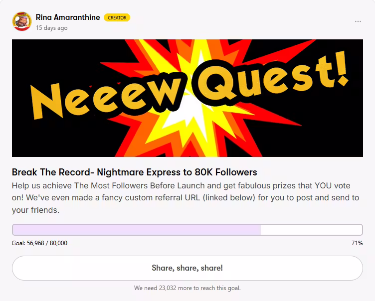 Record Break? Here's an update on how close we are to breaking the record for most pre-launch followers on Backerkit! 71% is WILD! Thanks for your support crawlers and make sure you get out there and share, share, share!