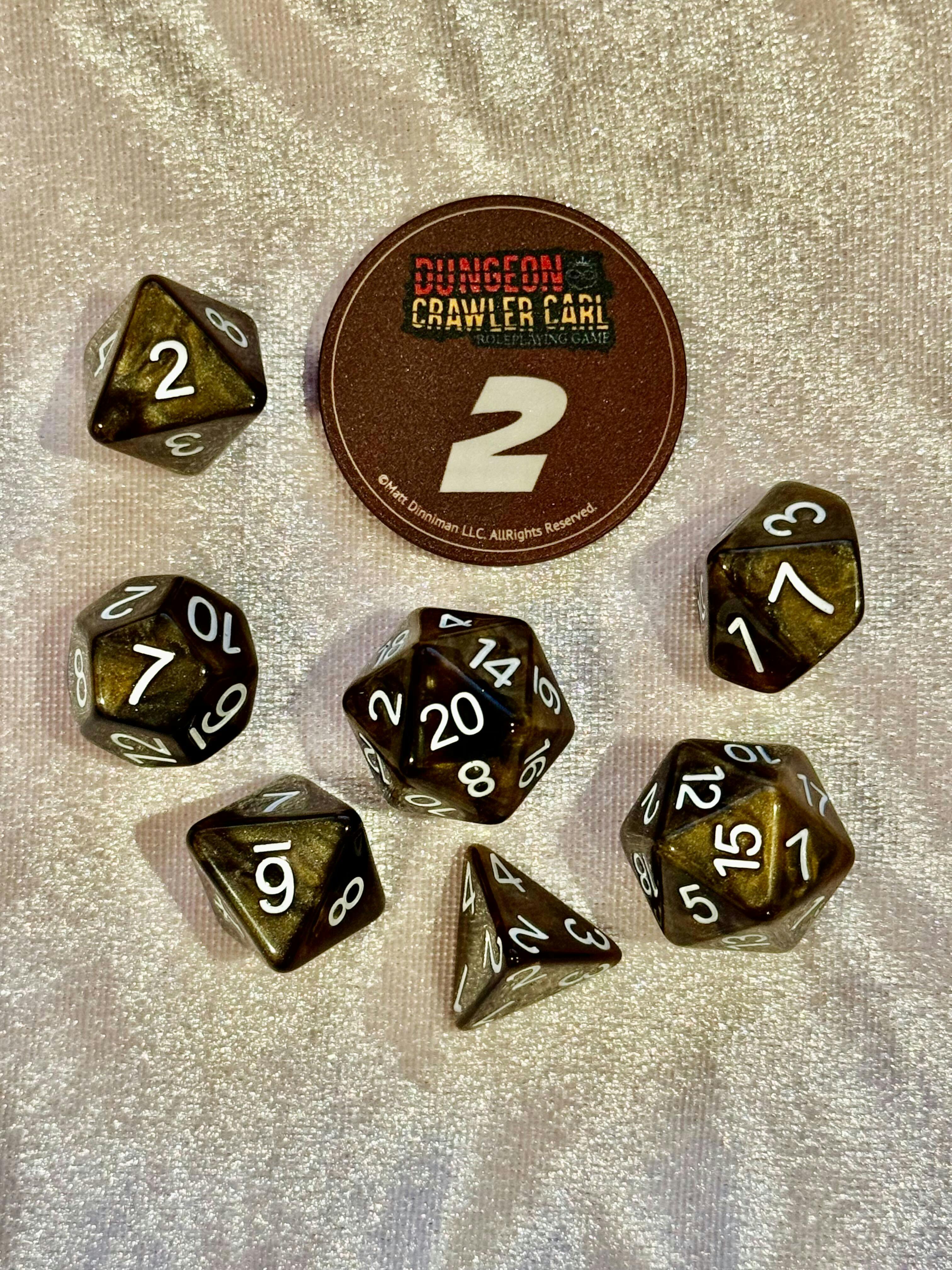 - 1 Boring Ol’ Dice Set (d2, d4, d6, d8, d10, d12, 2xd20)