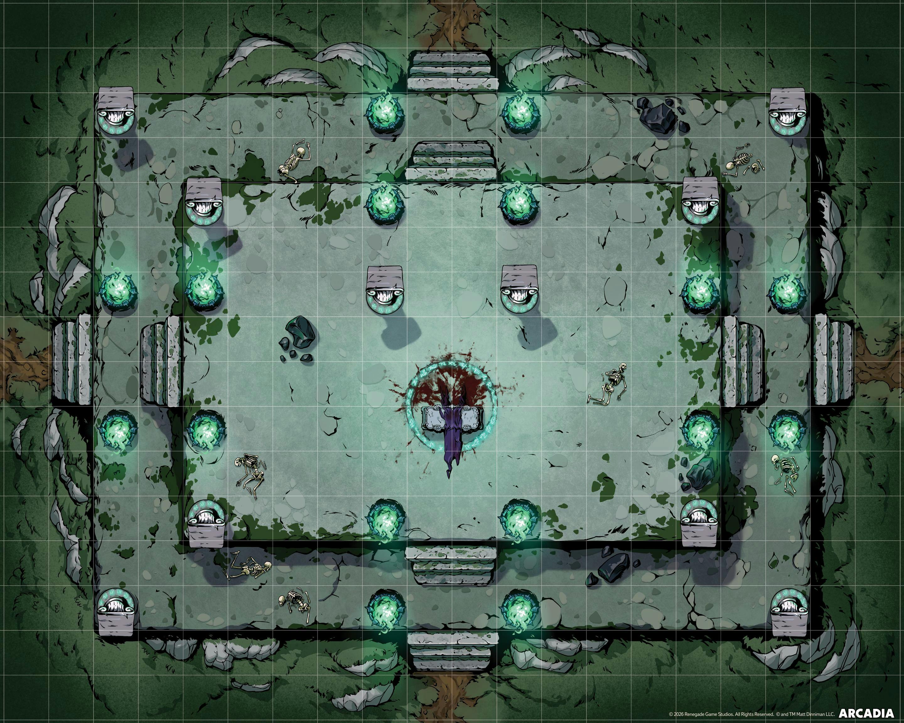 - 5 Double-Sided Map Posters are included in this set. These 16" x 20" maps depict 10 battle locations, from a creepy-ass altar to the supermarket!